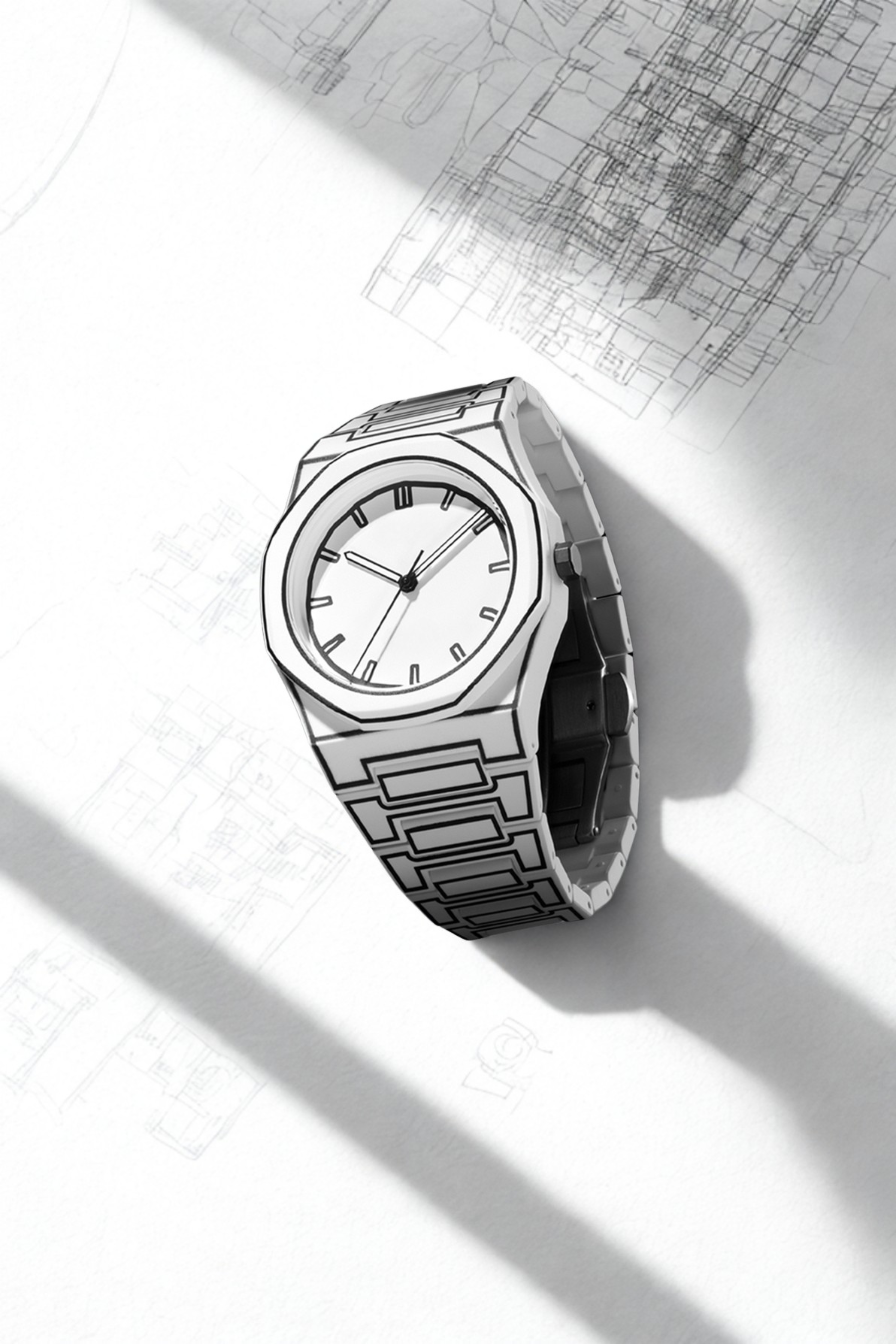 sketch blanc es la versión más ligera de nuestra pieza conceptual. fabricado en policarbonato blanco mate, sus líneas negras dibujadas a mano recuerdan los primeros bocetos de un arquitecto. atrevido pero limpio, juguetón y a la vez sofisticado — está pensado para destacar desde la sencillez. más que un reloj, es una idea hecha forma para quienes no siguen caminos marcados: los dibujan ellos mismos.