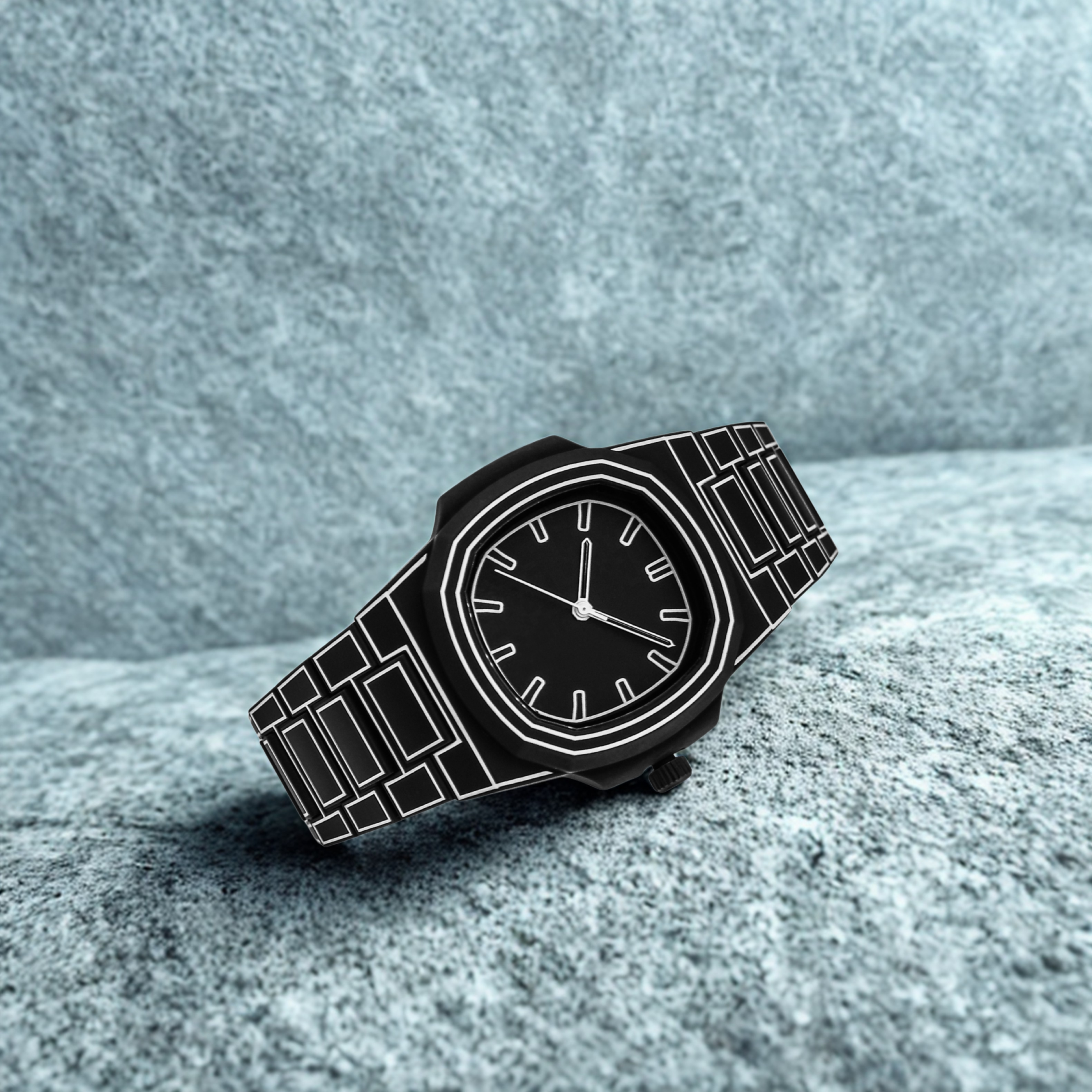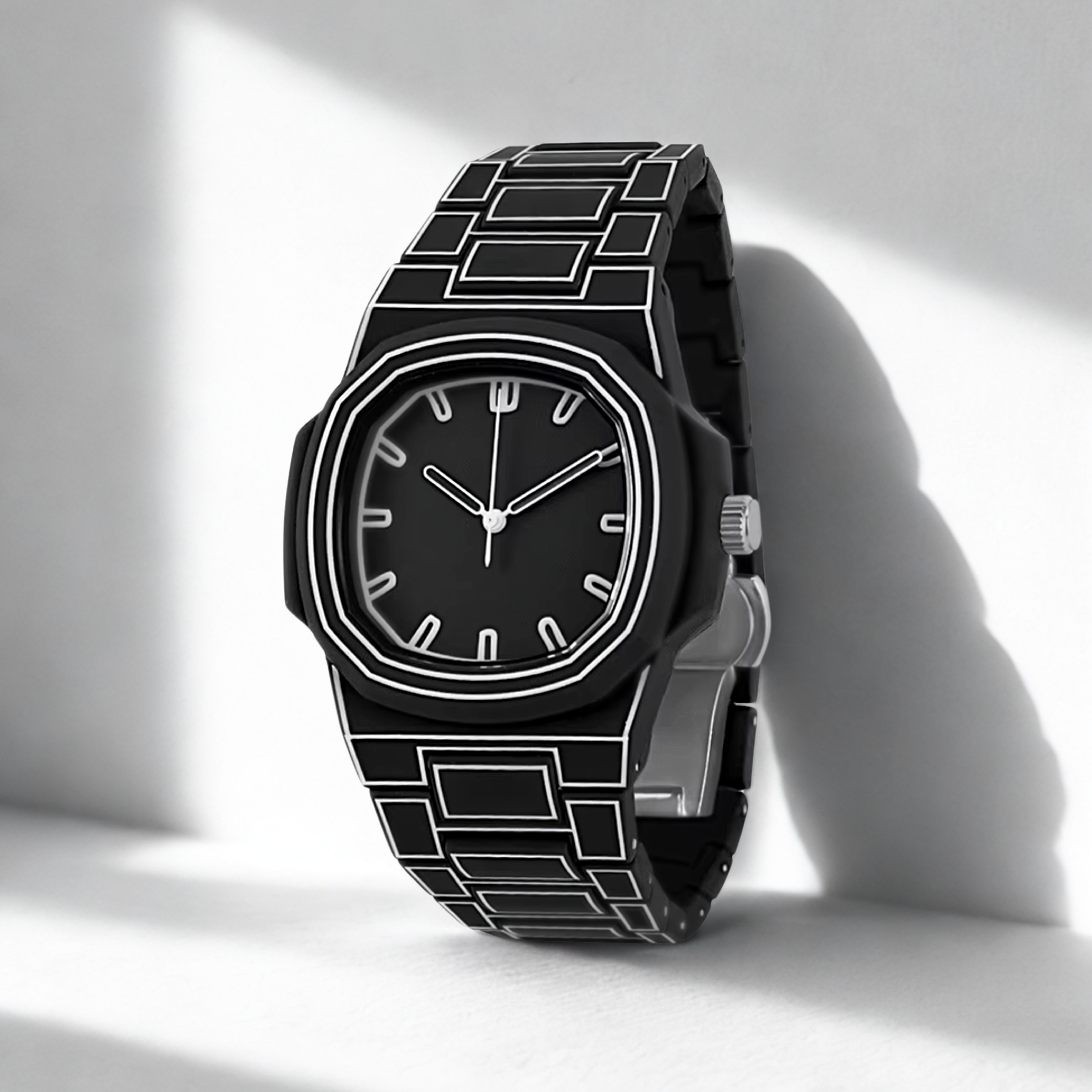 sketch graphite revela el lado más suave de la colección sketch — donde las curvas sustituyen a los bordes y la línea fluye con más libertad. con una carcasa negro profundo y contornos blancos dibujados a mano, esta pieza se siente como un diseño detenido a mitad de proceso. tacto suave, peso pluma y una presencia visual que destaca. diseñado en parís, hecho para perdurar.